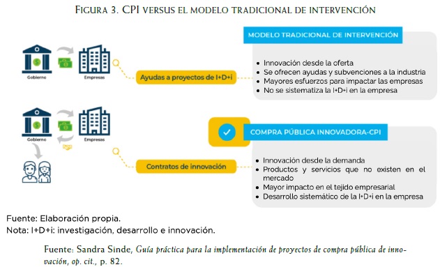 Respecto a la comparación del modelo tradicional de intervención de contrataciones públicas, frente al modelo de compra pública innovadora, cabe tener presente la diferencia en su aplicación como se puede advertir en el siguiente gráfico (figura 3).