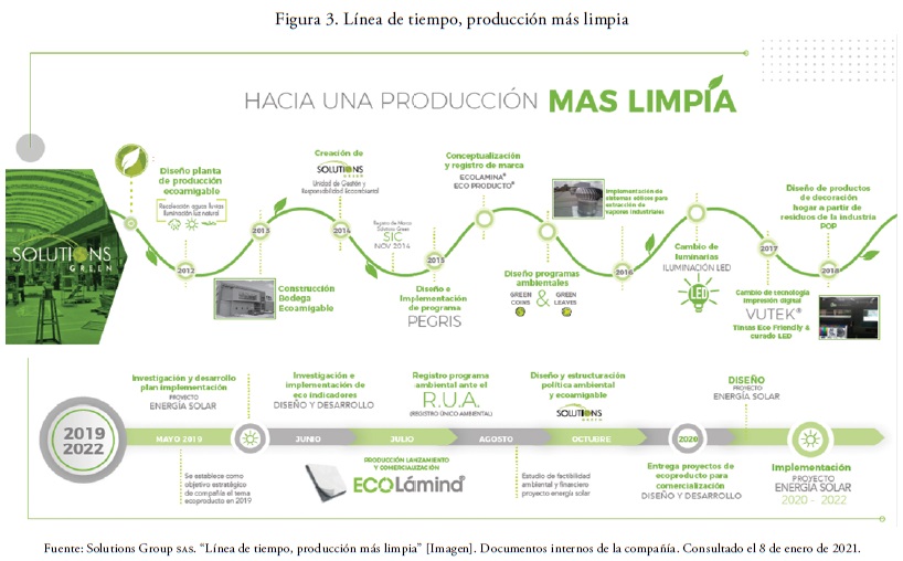 En la figura 3 se relaciona una línea de tiempo en la que se muestran los acontecimientos más importantes de varios años, que han llevado a la organización hacia una producción más limpia. Ha sido un proceso de ocho años que aún continúa, lo que implica inversión económica, de tiempo y de recurso humano.