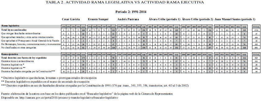 2. EL EJERCICIO DE LA FUNCIÓN LEGISLATIVA A PARTIR DE LA EXPEDICIÓN DE LA CONSTITUCIÓN DE 1991: SEGUNDO PERIODO (1991- 2014)42