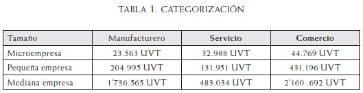 El mencionado decreto trae una categorización por sectores (artículo 2.2.1.13.2.2), de la cual se sustrae el límite de ingresos por actividades ordinarias anuales en UVT para cada clasificación. Cuando se supera el límite de la mediana empresa será gran empresa: