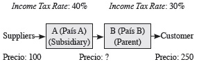 Siendo así, si el porcentaje de impuesto por el Income Tax Rate (ITR) del país B es más bajo que el del país A, la carga fiscal para A y B se verá reducida por el uso inapropiado de los precios de transferencia. Veámoslo así: