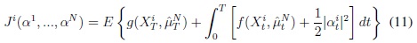 • Cada jugador i tiene asociada una función de costo en un horizonte finito [0,T] dada por:dónde el valor esperado es sobre (W1t), (W2t),…, (WNt) y (X1t), (X20),…, (Xn0).