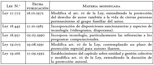 27 Hasta el año 2000, la Ley 17.336 ha sido modificada por las siguientes leyes:
