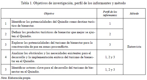 En este contexto, el artículo analiza la posibilidad de desarrollar el turismo de bienestar en el departamento del Quindío como alternativa económica que contribuya a la construcción de paz en su territorio. Para ello, se han propuesto cinco objetivos: (1) identificar las potencialidades del Quindío como destino turístico de bienestar; (2) definir los productos turísticos de bienestar que mejor se ajusten a las características del departamento; (3) explorar el potencial de este tipo de turismo para la construcción de paz en las zonas de posconflicto; (4) analizar los obstáculos y las necesidades existentes para la implementación exitosa del turismo de bienestar en el departamento; (5) identificar a los actores clave para el desarrollo del turismo de bienestar en el Quindío. En síntesis, esta investigación permite reconocer las actividades turísticas que se realizan tradicionalmente en el Quindío y propone ponerlas en práctica en municipios que, aunque tienen potencial, aún no han desarrollado sus propias iniciativas y se encuentran en fase de recuperación tras el conflicto.
