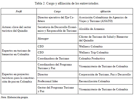 Para dar respuesta a los objetivos de esta investigación, se analizó información de distintas fuentes. Por un lado, se revisaron fuentes secundarias, como artículos académicos, informes estadísticos y documentos de políticas públicas de Colombia, en general, y del Quindío, en particular. Por otro lado, se entrevistó a diez informantes clave con tres perfiles diferentes: