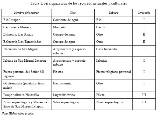 El 95 % de los entrevistados afirmaron estar interesados en conocer la localidad debido a sus atractivos naturales y culturales. Entre los recursos que han visitado por lo menos alguna vez, y sobre los cuales tienen algún conocimiento, se encuentran los balnearios Las Ranas y Los Tamarindos, la hacienda de San Miguel, las paleterías, la zona arqueológica y el Museo de Sitio, así como la iglesia de San Miguel Ixtapan. Estos recursos forman parte del imaginario turístico de la comunidad, por eso es necesario trabajar en su gestión mediante el diseño de un producto turístico que los contemple.